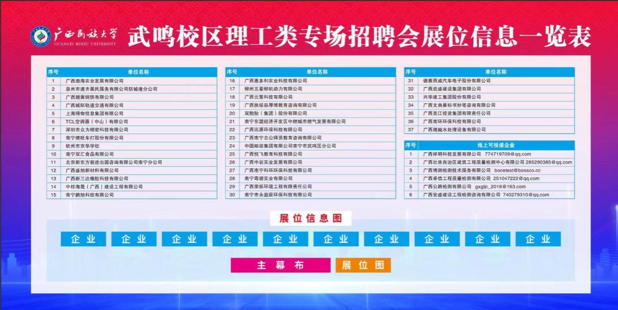 为深入贯彻落实高校毕业生就业工作部署,积极搭建用人单位与毕业生双向选择的平台,切实促进公司毕业生高质量就业。4月15日,英国365集团邀请校外用人单位进校开展英国365集团武鸣校区理工类专业2025届毕业生联合招聘会。本次招聘会设置地点在武鸣校区校前广场右侧一号实验楼一侧长廊。