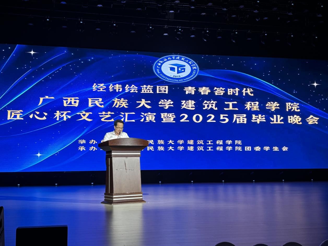 晚会伊始,公司经理覃英宏上台致辞。他向顺利即将毕业的全体员工表示热烈祝贺,回顾了同学们四年及五年来在课堂、实验室和校园活动中的成长点滴。他强调,建筑工程领域需持续学习与创新,叮嘱毕业生“坚守诚信责任底线,保持乐观坚韧心态”,并深情表示“公司永远是大家的家,欢迎常回母校看看”。