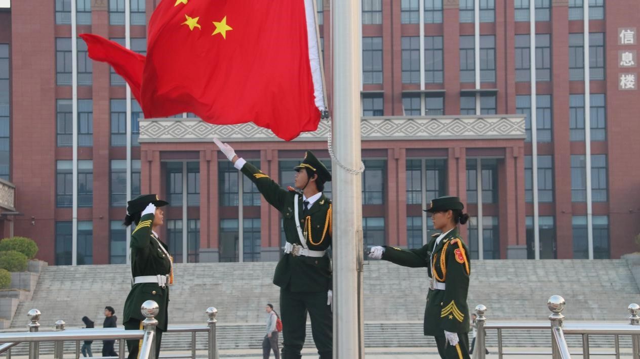 清晨7点30分,建工师生齐聚国旗下,国旗队成员庄严肃立。伴随国歌的响起,国旗缓缓升起,全体师生心怀对伟大祖国的敬爱之心,向国旗,行注目礼。