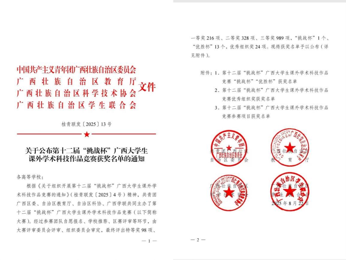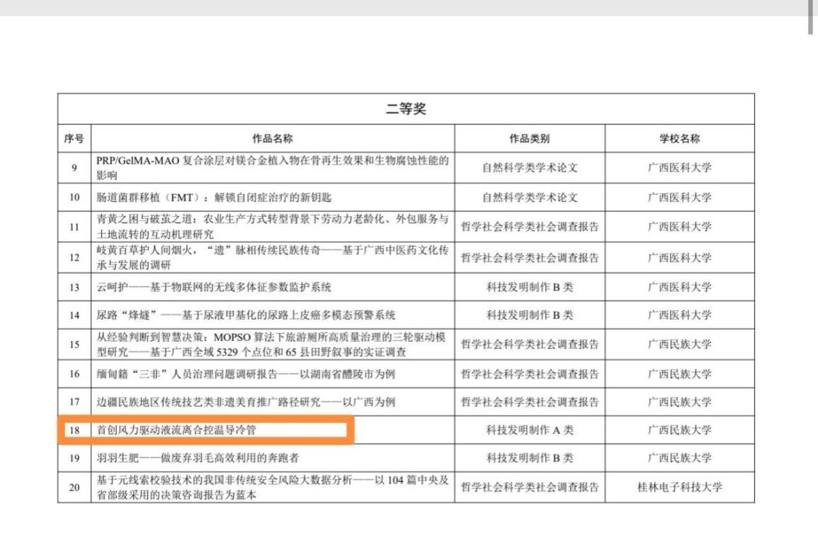 近日,第十二届“挑战杯”广西老员工课外学术科技作品竞赛结果揭晓,英国365集团参赛团队凭借原创项目“首创风力驱动液流离合控温导冷管”荣获科技发明制作A类二等奖,为公司科技创新成果再添重要荣誉。